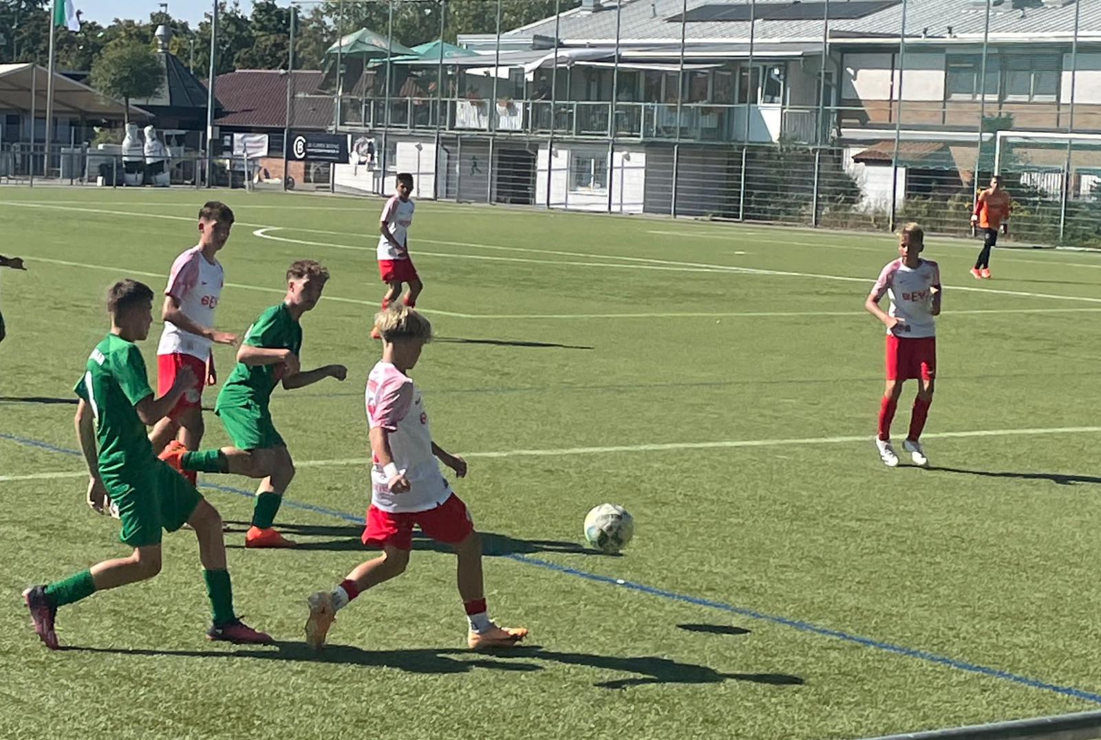 Am Mittwoch stand der zweite Spieltag der U14 in der Verbandsliga der U15-Mannschaften auf dem Programm. Erneut mussten die jungen Kickers aufwärts antreten. Diesmal war die U14 zu Gast beim 1.FC Königsstein. Die Partei fing mit einer starken Druckphase der Königssteiner Mannschaft an. Diese setze den OFC in den ersten Minuten mit einem hohen Pressing in der Hälfte der Kickers und einer extrem körperbetonten Spielweise unter Druck. In der Folge tat sich die U14 mit dem eigenen Spielaufbau schwer. Etwa zur Mitte der ersten Halbzeit stellte sich der OFC besser auf die Spielweise ein und konnte nun zunehmend gegenhalten und sich aus der Drucksituation befreien. Im weiteren Spielverlauf fanden sich die Kickers immer besser zurecht und konnte ihrerseits jetzt entsprechend ihr Spiel aufbauen und bekamen somit mehr Spielanteile. Bis zur Halbzeit fielen keine Treffer, so dass man mit einem 0:0 Unentschieden in die Halbzeitpause ging. In der zweiten Halbzeit erspielte sich der OFC ein Übergewicht und ging zu diesem Zeitpunkt verdient nach einer schönen Kombination mit 1:0 in Führung. Die Kickers hielten den Druck auf den 1.FC hoch und konnten nach einer Standardsituation auf 2:0 erhöhen. Alles schien gelaufen, doch im letzten Drittel der zweiten Halbzeit gab es einen Foulelfmeter für Königsstein, den der 1.FC auch für den Anschlusstreffer nutzen konnte. Das Tor beflügelte die Königssteiner Mannschaft, die nun alles versuchte den Ausgleich zu erzielen. Das Spiel wurde von Minute zu Minute hektischer. Der OFC hielt dem Druck aber Stand und konnte so den ersten Auswärtssieg der Saison in Königsstein feiern.