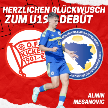 Das Leistungszentrum gratuliert unserem U19-Spieler Almin Mesanovic zu seinem Debüt in der bosnischen U19 Nationalmannschaft. Almin debütierte beim 2:0 Sieg gegen Bulgarien in Sofia und stand dabei in der Startelf. Auch für unsere 1.Mannschaft gab Mesanovic bereits sein Debüt. Er wurde erstmals beim 3:0 Heimsieg gegen den FK Pirmasens eingewechselt und kommt bisher auf drei Regionalligaeinsätze. Weiter so, Almin! ?